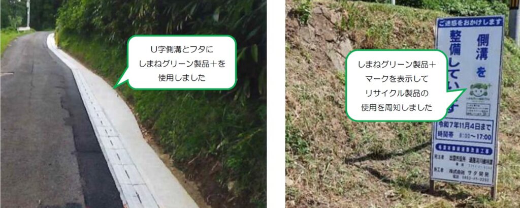 出雲市も、道路や水路の改良工事に「しまねグリーン製品+(プラス)」を使用することにより、再資源化・減量化を推進しています。