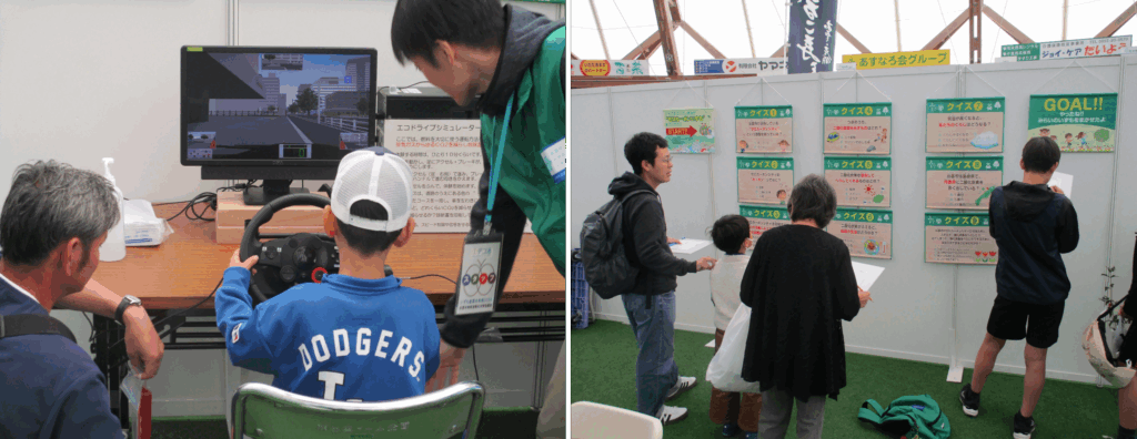 出雲市地球温暖化対策協議会では、エコドライブ体験やデコ活クイズ、苗木の無料配布(※1)など、環境問題について楽しみながら考えることができるブースを企画しております。