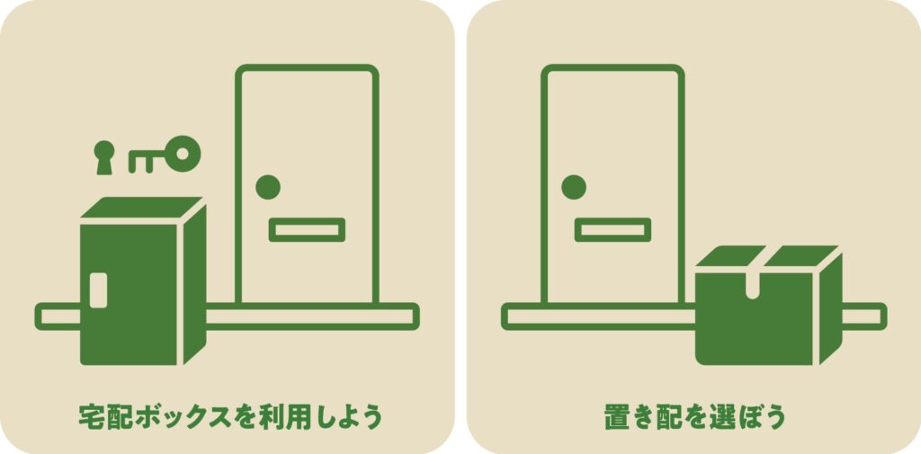 玄関先や車庫など指定された場所に荷物を置いてくれる「置き配」も再配達の防止に役立ちます。